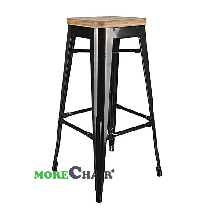 Ghế bar, ghế nhà hàng khách sạn không tựa mặt gỗ TL-09 màu đen