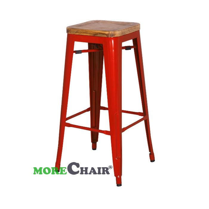 Ghế bar Tolix không tựa mặt gỗ TL-09 màu đỏ