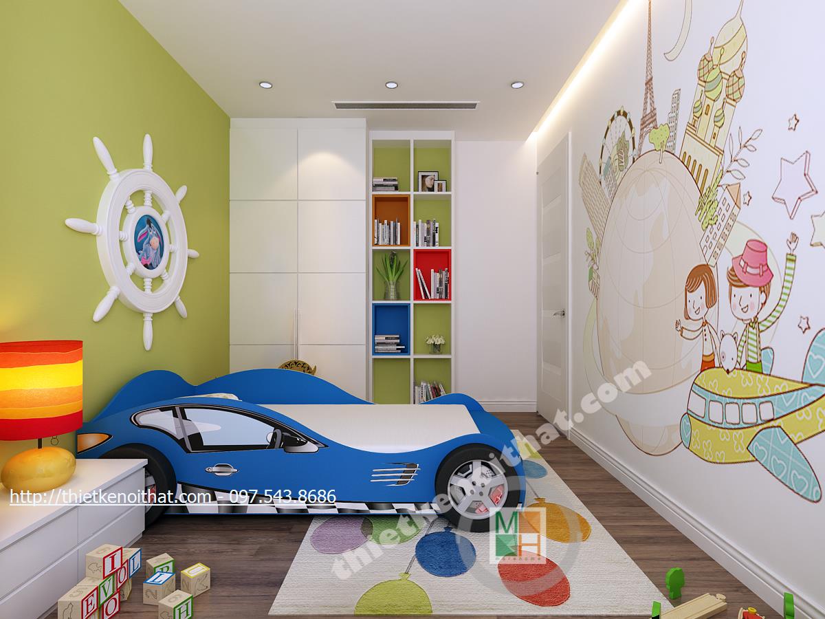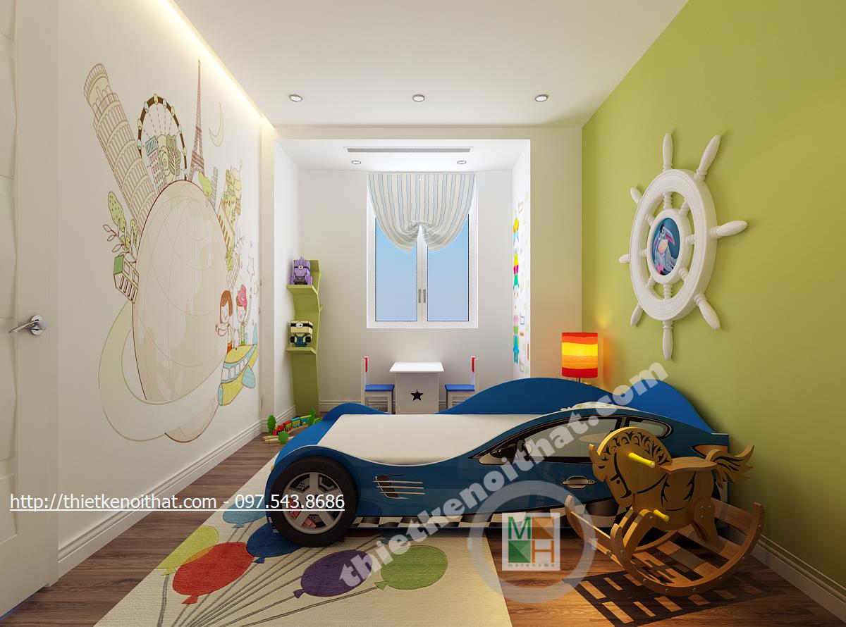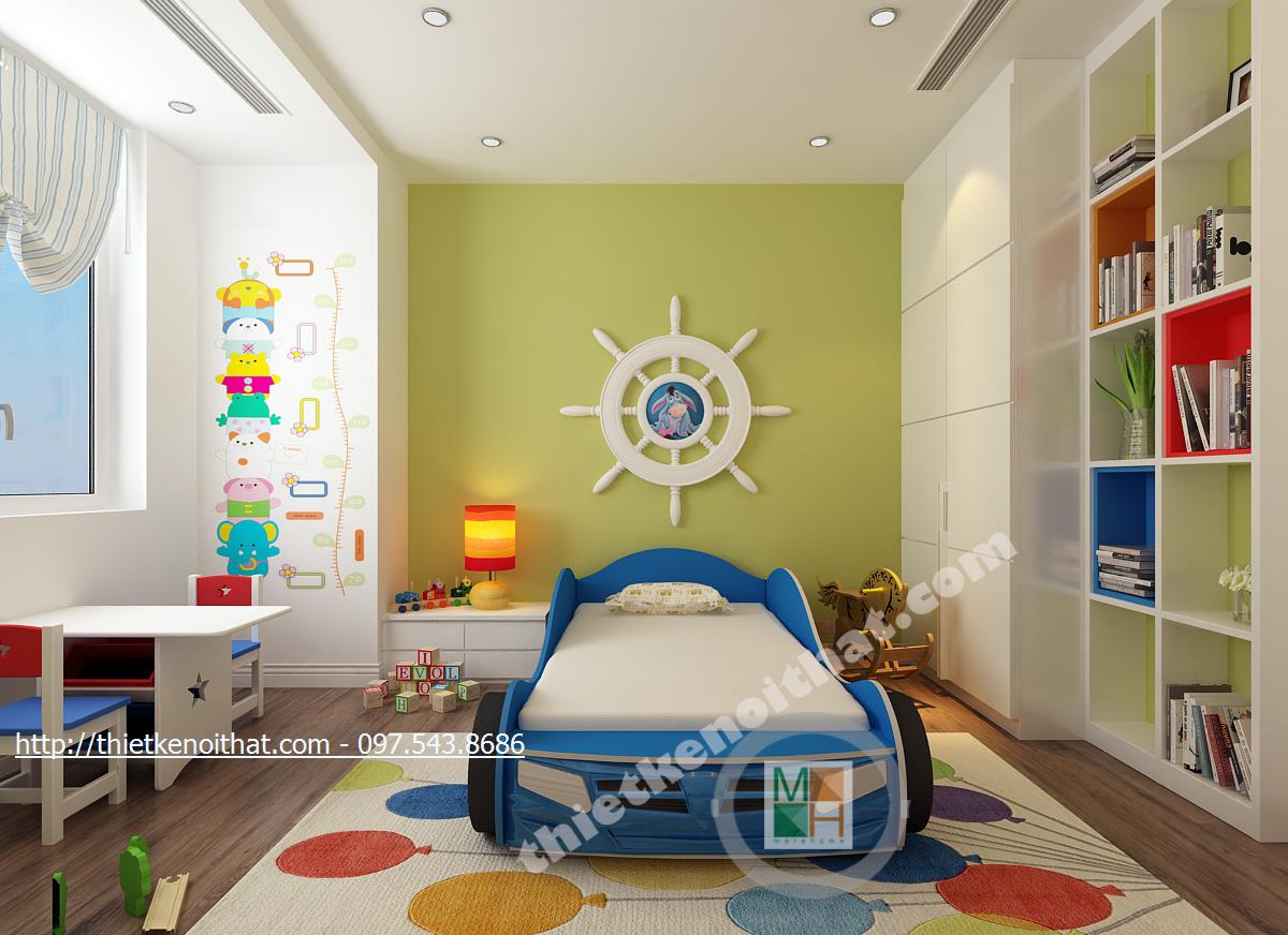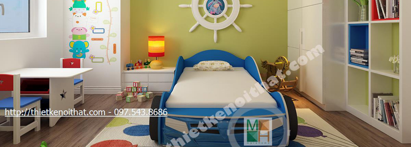 Phòng ngủ con trai năng động với chiếc giường oto ngộ nghĩnh