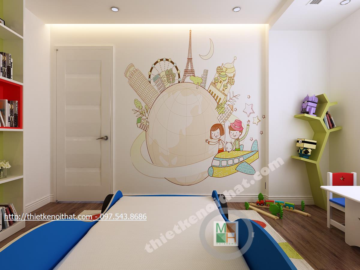 Phòng ngủ con trai năng động cùng sắc xanh nhẹ nhàng sinh động