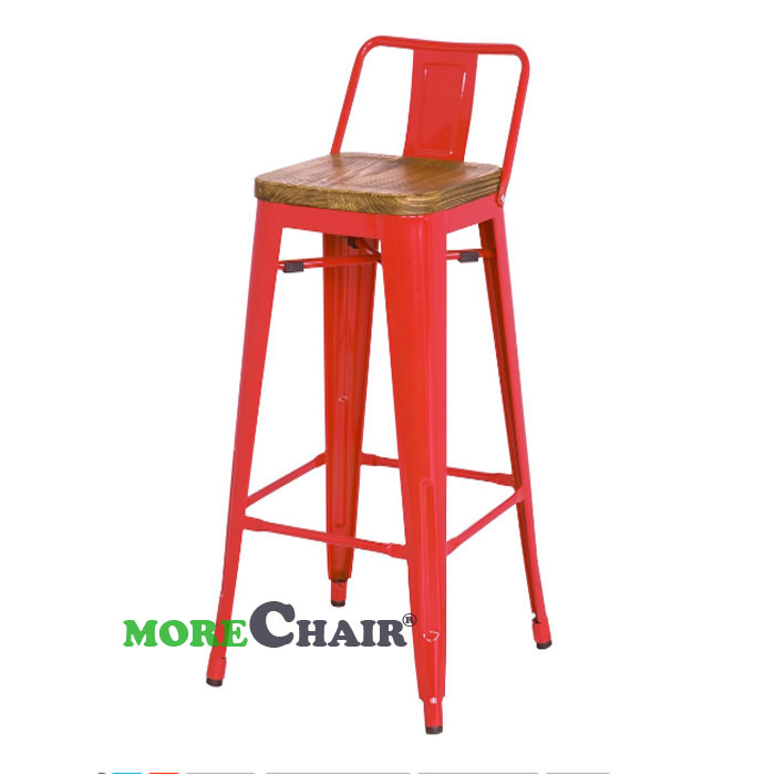 Ghế bar Tolix tựa thấp mặt gỗ TL-06 màu đỏ