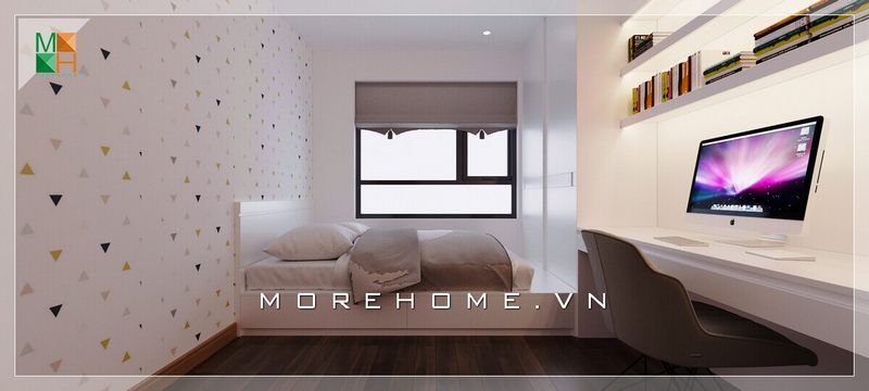 Thiết kế nội thất phòng ngủ chung cư tiện nghi với đồ nội thất hiện đại sắp xếp cách khoa học giúp tiết kiệm không gian căn phòng