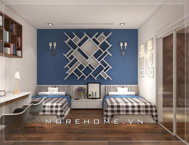 Mẫu kệ decor trang trí đẹp, hiện đại với chất liệu gỗ công nghiệp đơn giản và hiện đại đặt đầu giường tạo nên vẻ đẹp ấn tượng cho không gian phòng ngủ